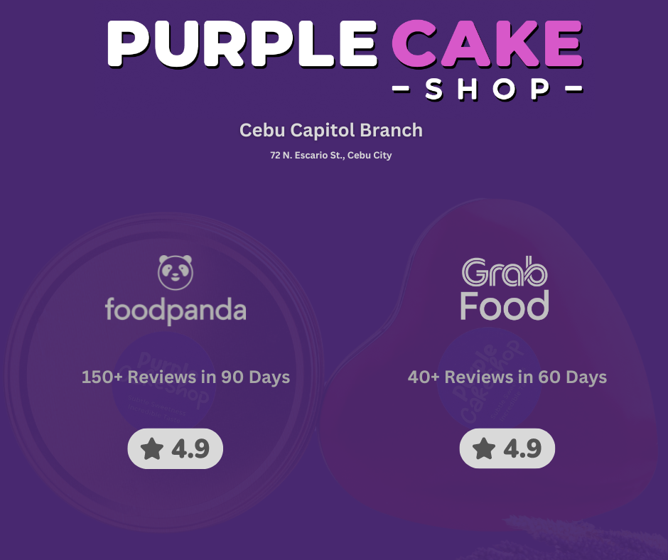 Search "Purple Cake" in FoodPanda and GrabFood. App commission and delivery fee applies.